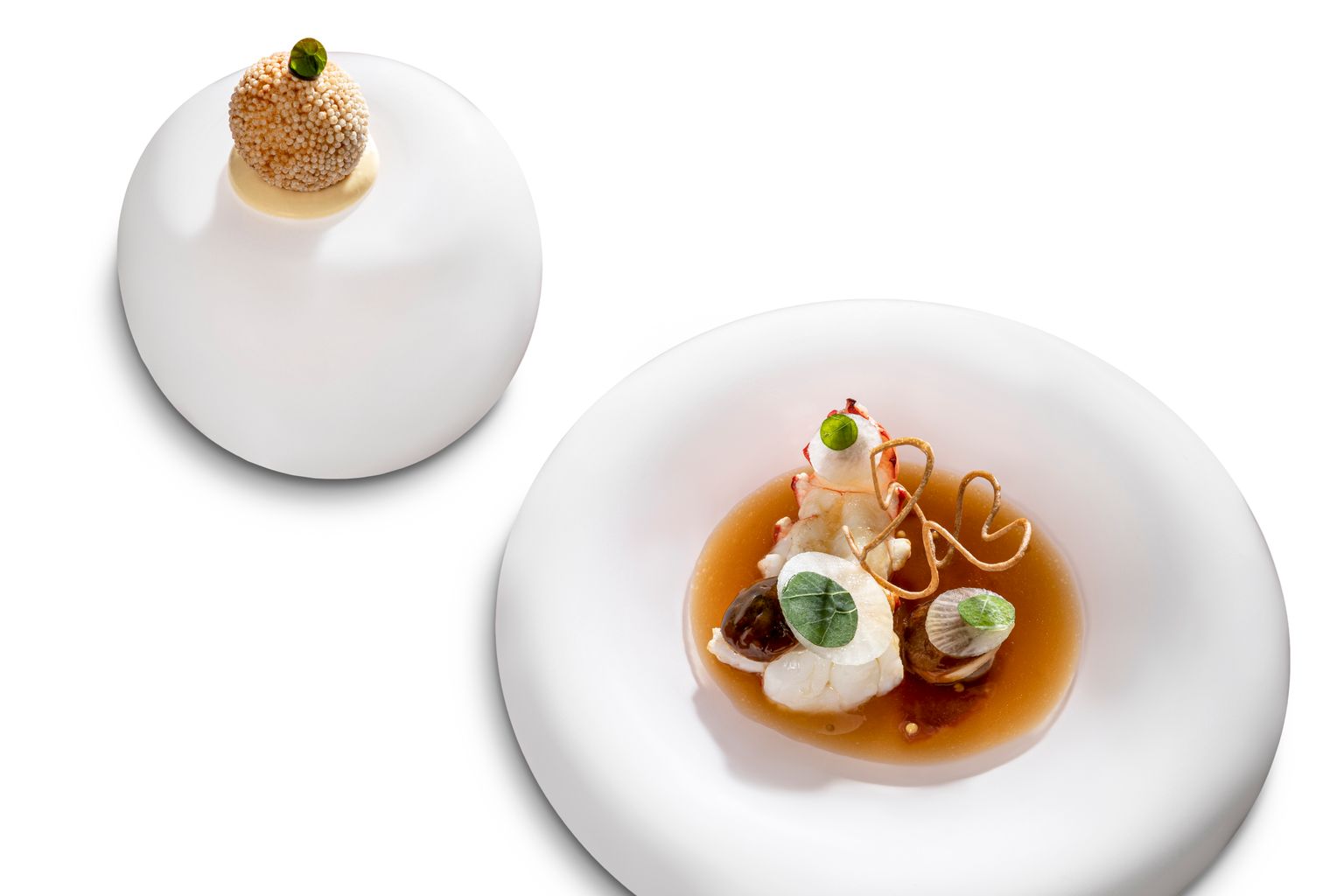 Es ist eine Zeitenwende. Bei unseren Testbesuchen war Juan Amador im Restaurant präsent. Es war aber auch nicht zu übersehen, dass David Fleckinger, sein Küchenchef, bereits eine tragende Rolle spielt. Im Laufe unserer Produktion schicken wir Fragebögen an alle Restaurants, um Dinge wie Namen, Öffnungszeiten und dergleichen zu checken. Im Fragebogen, der vom Amador Restaurant kam, kam Juan Amador nicht mehr vor. Nur noch David Fleckinger. Als Person wird sich Juan Amador also zurückziehen, als Marke wird der Name bleiben. Wir sind sehr gespannt – und angesichts der Tatsache, dass ohnehin schon sehr viel von Fleckinger im Amador-Menü steckt, auch zuversichtlich, dass alles beim Guten bleiben wird. Zum Menü selbst: Es startet mit Klassikern. Etwa der spannenden Interpretation vom Wiener Tafelspitz. Oder dem „Waldspaziergang“, einem kleinen Pilzsandwich, das so fein und ziseliert da liegt – und es dabei faustdick hinter den Ohren hat. Ein Happen nur, aber flugs beamt sich der Geist auf eine Lichtung mit regennassem Waldboden. Oder – einer unserer Lieblingsgrüße – Foie gras, Sardellen und grüner Apfel zwischen Artischockenblättern. Der Brotgang ist perfekt wie immer. Butter von Jean-Yves Bordier aus Saint-Malo, Amadors andalusisches Olivenöl, Büffelmilchaufstrich. Wenn sich die Möglichkeit ergibt, sollte man eines der – optional angebotenen – Signature Dishes – dazunehmen. Etwa die geeiste Beurre blanc. Ein zeitloser Klassiker, immer wieder leicht verändert und weiterentwickelt, aber stets mit einer leicht pochierten (Gillardeau-)Auster und Haselnussschaum. Danach norwegischer Hummer mit Jalapeño-Espuma, Pomelos und einer paradeiswürzigen Vinaigrette. Ein komplexes, feines Gericht, das in geschmacklicher Hinsicht auf ganzer Klaviatur spielt. Dezente Schärfe, ein deutlicher Umami-Akkord, spannende Säure und über allem eine versöhnliche Süße, über die das Gericht verfügt, weil etwas Melipona-Honig zum Einsatz kommt. Umwerfend. Als Hauptgang Müllerin. Genauer gesagt Atlantischer Steinbutt à la meunière. Mit Meyer-Zitrone (die wie ein scharfes Rasiermesser durch die üppige Sauce gleitet), knuspriger Haut und einer hauchdünnen Scheibe Miyazaki-Rind. Der bretonsiche Steinbutt ist übrigens fast „gesetzt“ und kommt im Menü immer wieder vor – bei einem späteren Besuch mit salziger Wachauer Marille, Steinpilz und Bries vom Kalb. Wir können echt nicht sagen, welcher der beiden Gänge besser war. Großartig sind übrigens auch Service und Weinbegleitung. Spannende Weine von (noch) weniger bekannten Winzern aus Österreich, solide Namen aus Spanien und Frankreich und ein reifer Madeira hinten bei den Desserts.